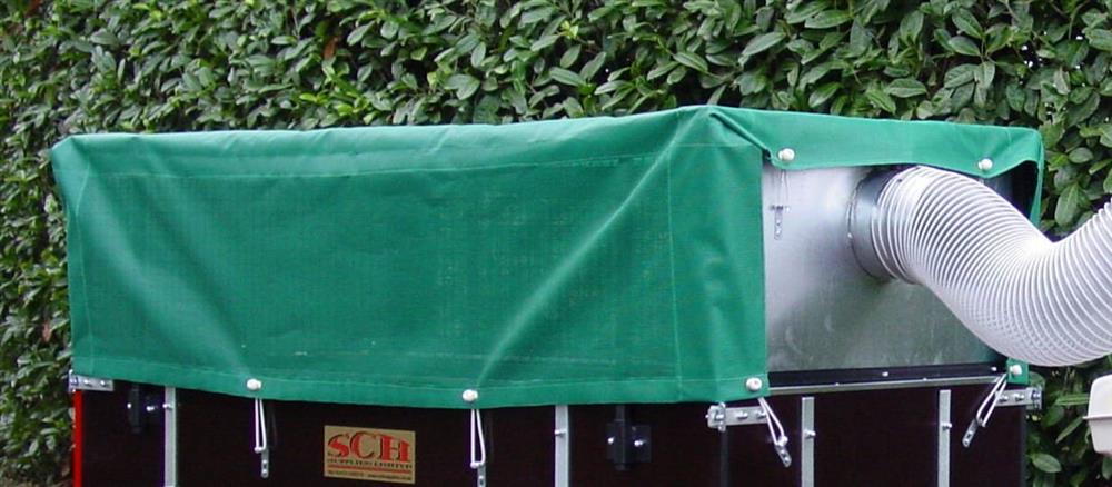 The favourite way of using the PSU is to attach it to the rear of the leaf-collecting trailer. This trailer can be supplied with a trailer adaptation kit, you could modify your own trailer, or SCH will collect and modify it for you. The discharge hose is attached to the rear of the trailer. The operator is able to suck up fallen leaves efficiently.