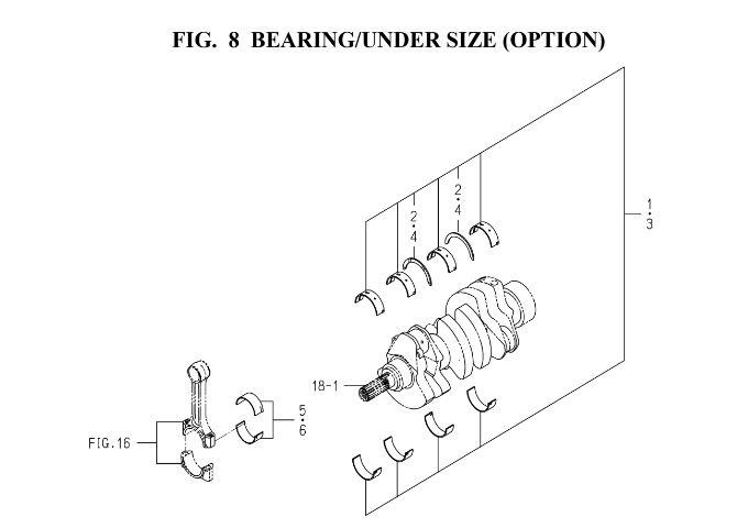 BEARING/UNDER SIZE (OPTION) assembly details for Iseki ENGINE E3CGVG...SF438 (6008-097-310-10) SF450 model