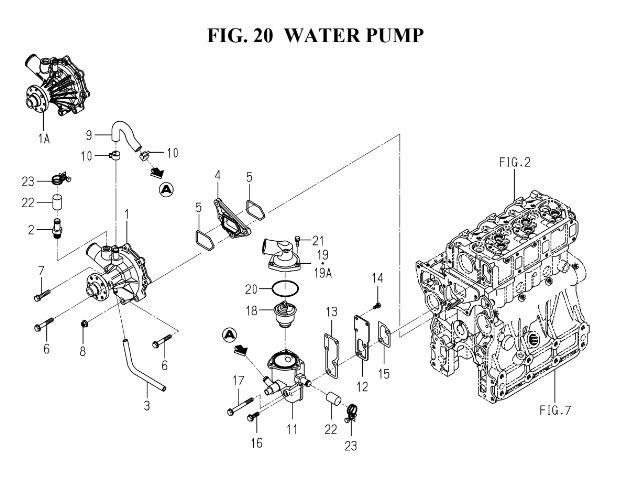 WATER PUMP assembly details for Iseki ENGINE E3CGVG...SF438 (6008-097-310-10) SF450 model