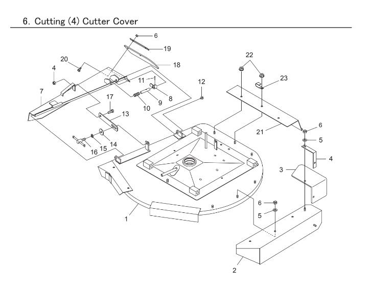 CUTTING (4) CUTTER COVER assembly details for Iseki SRA-800 RIDE ON BRUSHCUTTER SRA 800 - 950F model
