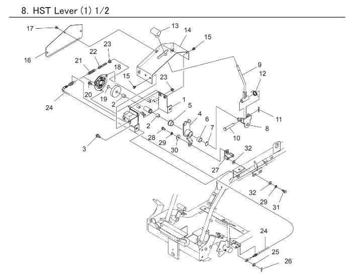 HST LEVER (1) assembly details for Iseki SRA-800 RIDE ON BRUSHCUTTER SRA 800 - 950F model