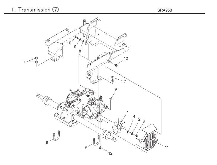 TRANSMISSION (7) assembly details for Iseki SRA900-950 RIDE ON BRUSHCUTTER SRA 800 - 950F model