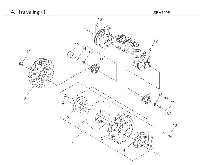 TRAVELING (1) assembly details for Iseki SRA900-950 RIDE ON BRUSHCUTTER SRA 800 - 950F model