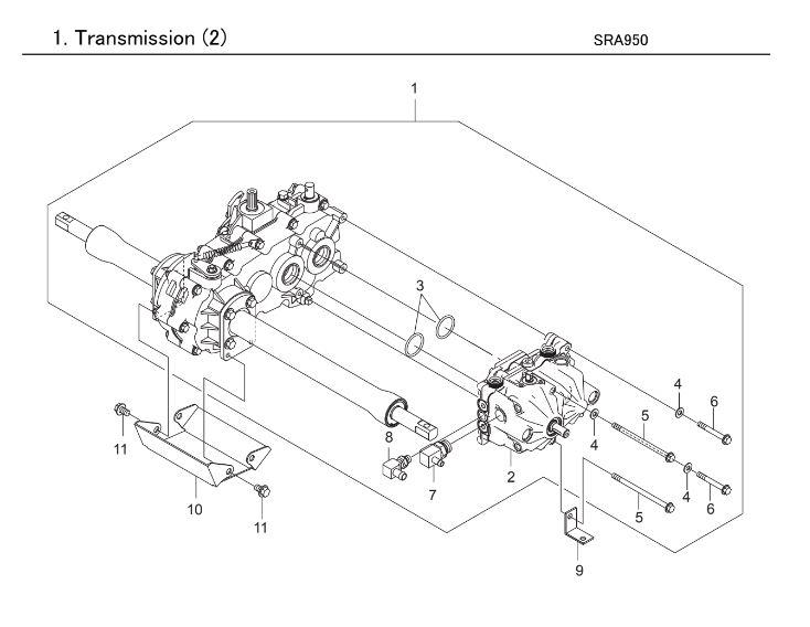 TRANSMISSION (2) assembly details for Iseki SRA950F-950 RIDE ON BRUSHCUTTER SRA 800 - 950F model