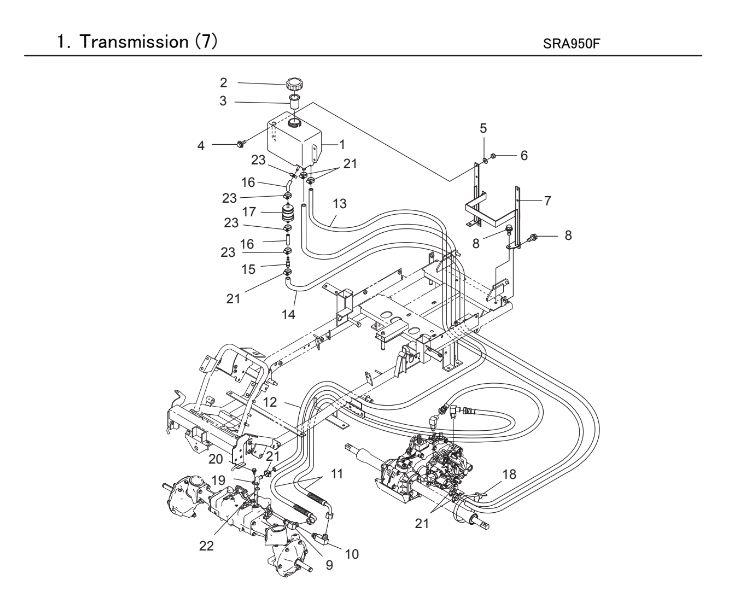TRANSMISSION (7) assembly details for Iseki SRA950F-950 RIDE ON BRUSHCUTTER SRA 800 - 950F model