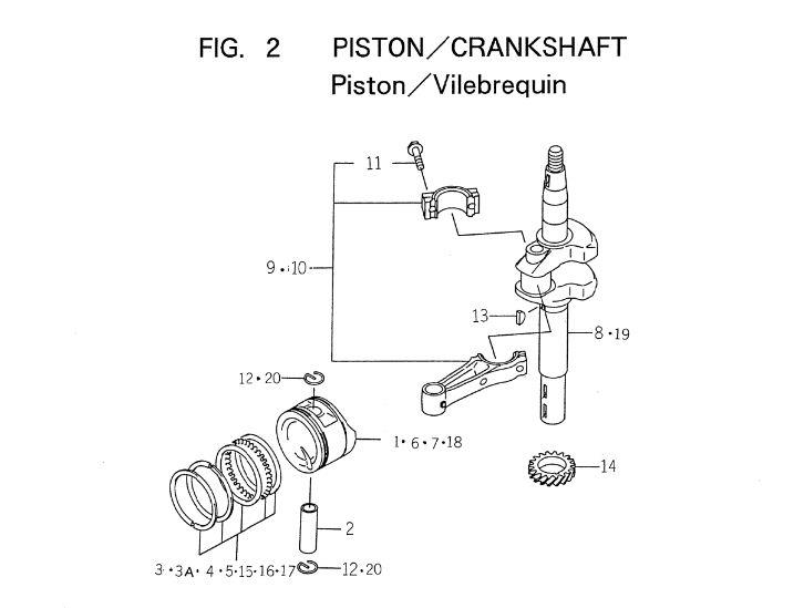 PISTON/CRANKSHAFT assembly details for Iseki SW519 MOWER (2503-098-100-10) ENGINE FC150V (AB02) (EB02) SW 519 & 521 & 621 model