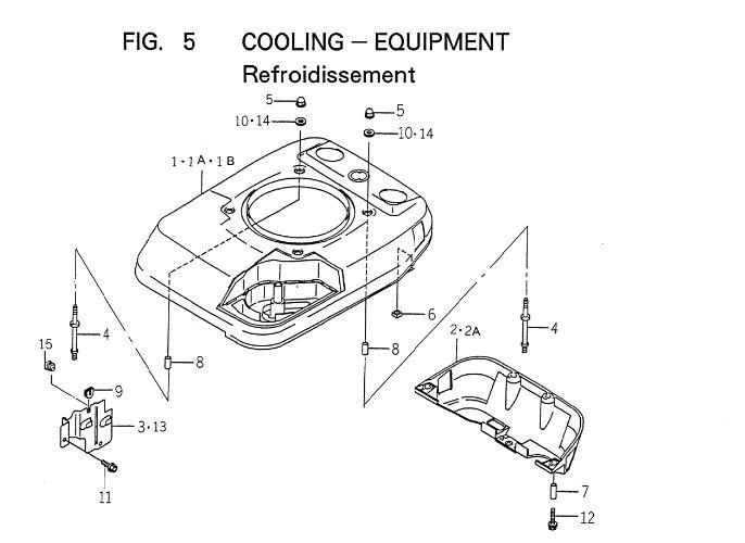 COOLING EQUIPMENT assembly details for Iseki SW521 MOWER (2500-98-100-10)ENGINE FC150V (AB02) (EB02) SW 519 & 521 & 621 model