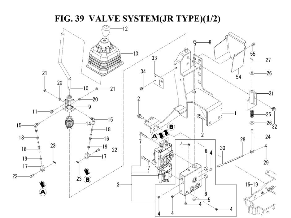 VALVE SYSTEM(JR TYPE((1/2)(1845-512-0100) assembly details for Iseki CHASSIS PC TXGS24 (1845-097-100-0A) TXGS24 model