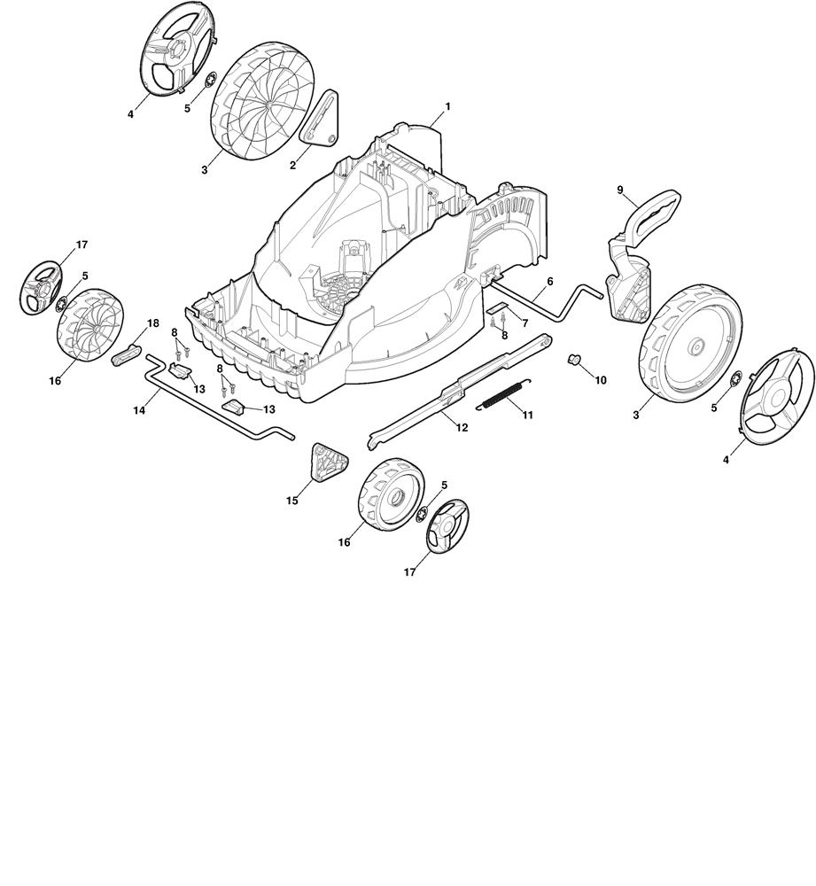 DECK AND HEIGHT ADJUSTING assembly details for Mountfield PRINCESS 38 (294380063/M21) 2021 model