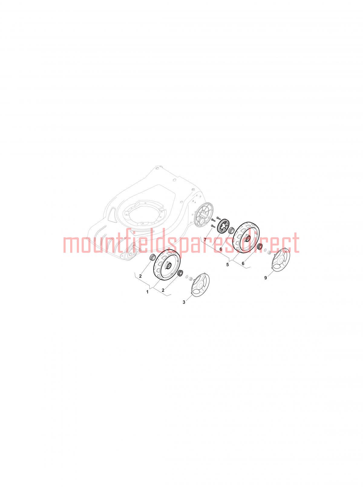 Wheels and Hub Caps assembly details for Mountfield SP46H-295496038-SF 2016 model