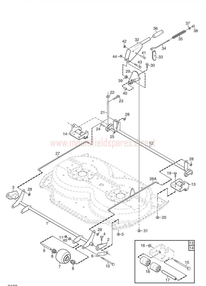 CONTROLS assembly details for Mountfield Mower deck 95C for 2100-series 2011 model