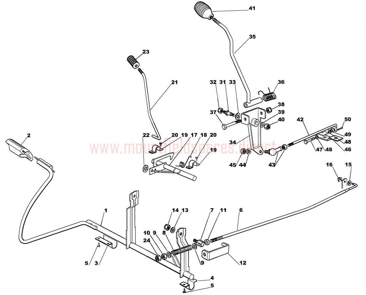 BRAKE CONTROL AND GEAR SHIFTER CONTROL assembly details for Mountfield 1236M-1436S-1436H-1636M-1636H 2006 model