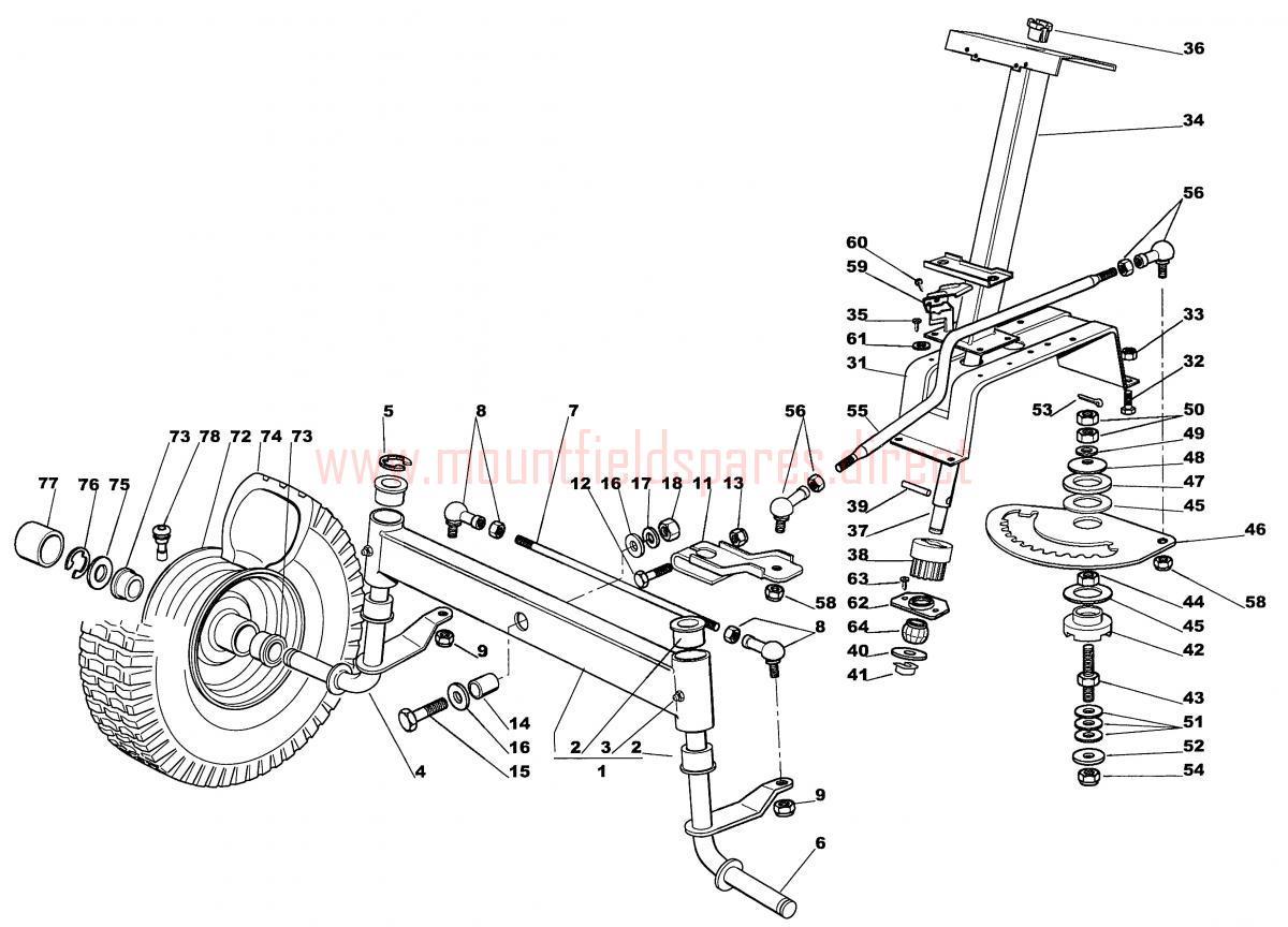 STEERING assembly details for Mountfield 1236M-1436S-1436H-1636M-1636H 2006 model