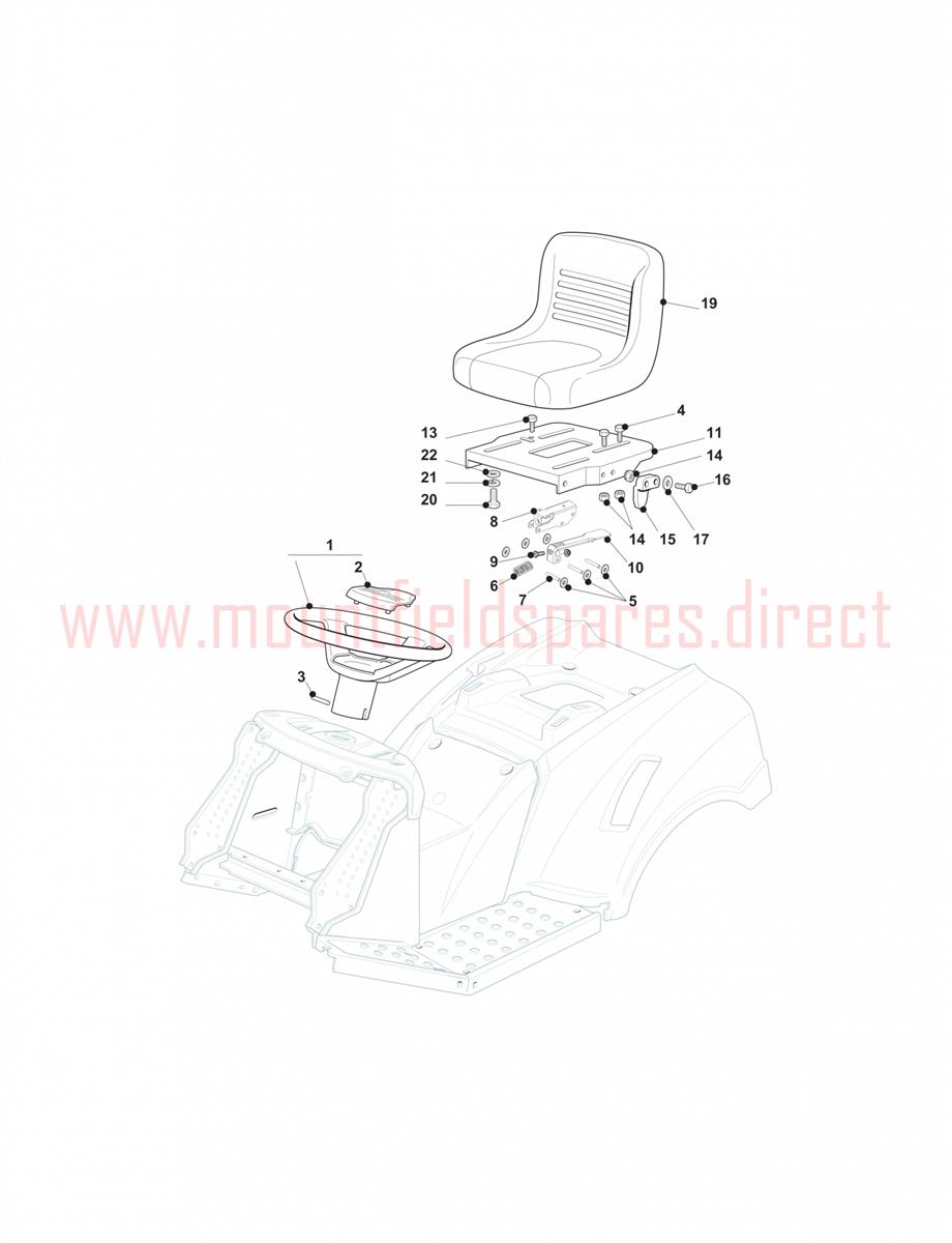 Ride-on 102-122 Seat & Steering Wheel assembly details for Mountfield 1640H (2T1710483) 2015 model
