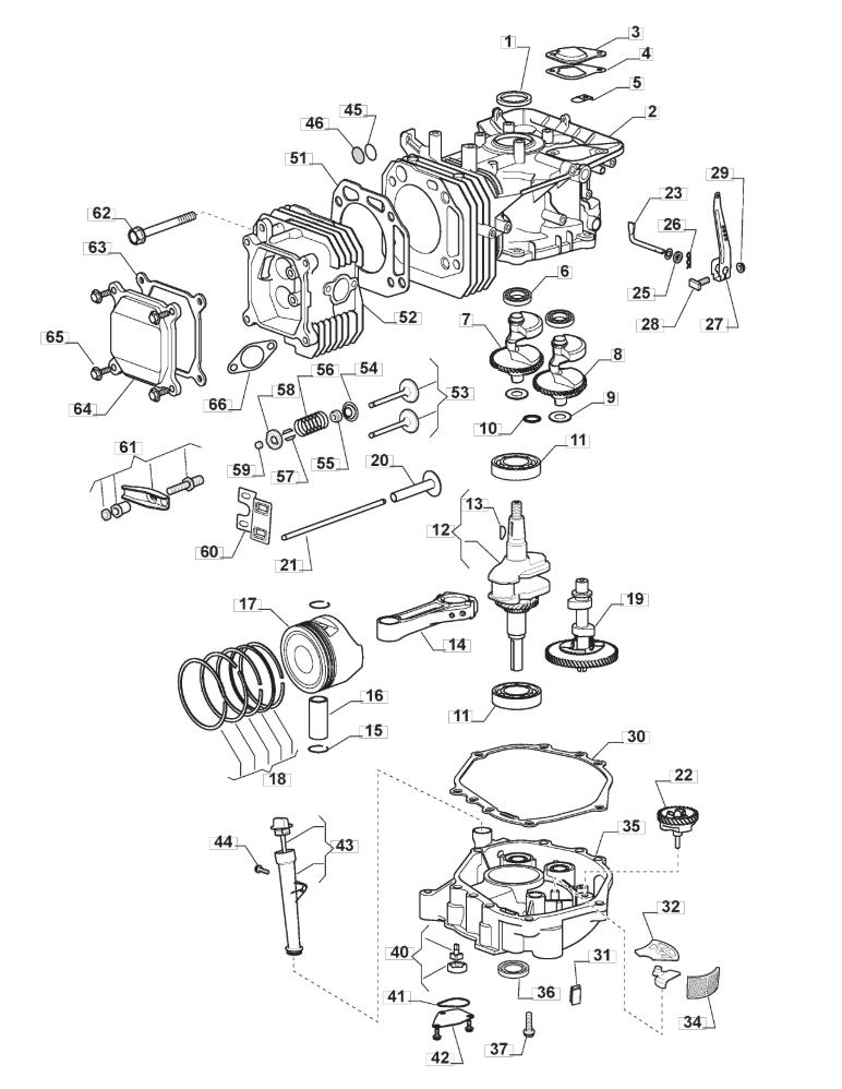 Engine - Piston, Crankshaft assembly details for Mountfield 1538M-SD (2T0530483/M15) 2018 model