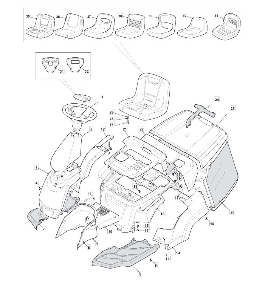 Body assembly details for Mountfield 827H (2T0070483/M16) 2018 model
