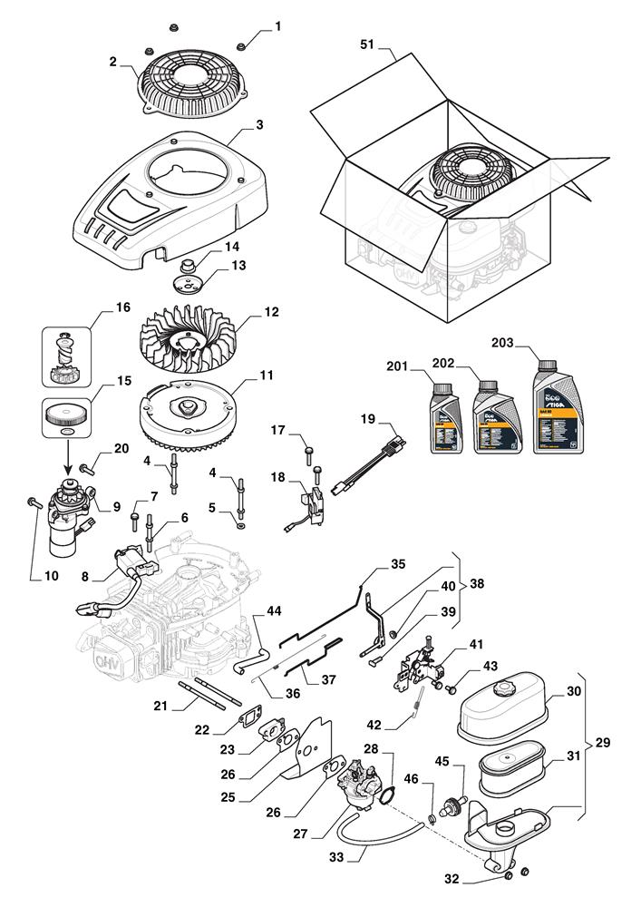 ENGINE - CARBURETTOR , AIR CLEANER ASSY assembly details for Mountfield 827H (2T0070483/M16) 2020 model