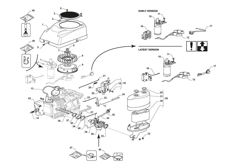 ENGINE - CARBURETTOR , AIR CLEANER ASSY assembly details for Mountfield T38M-SD (2T0520483/MC) 2020 model