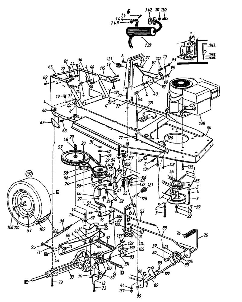 Drive system, Engine pulley, Pedal, Rear wheels