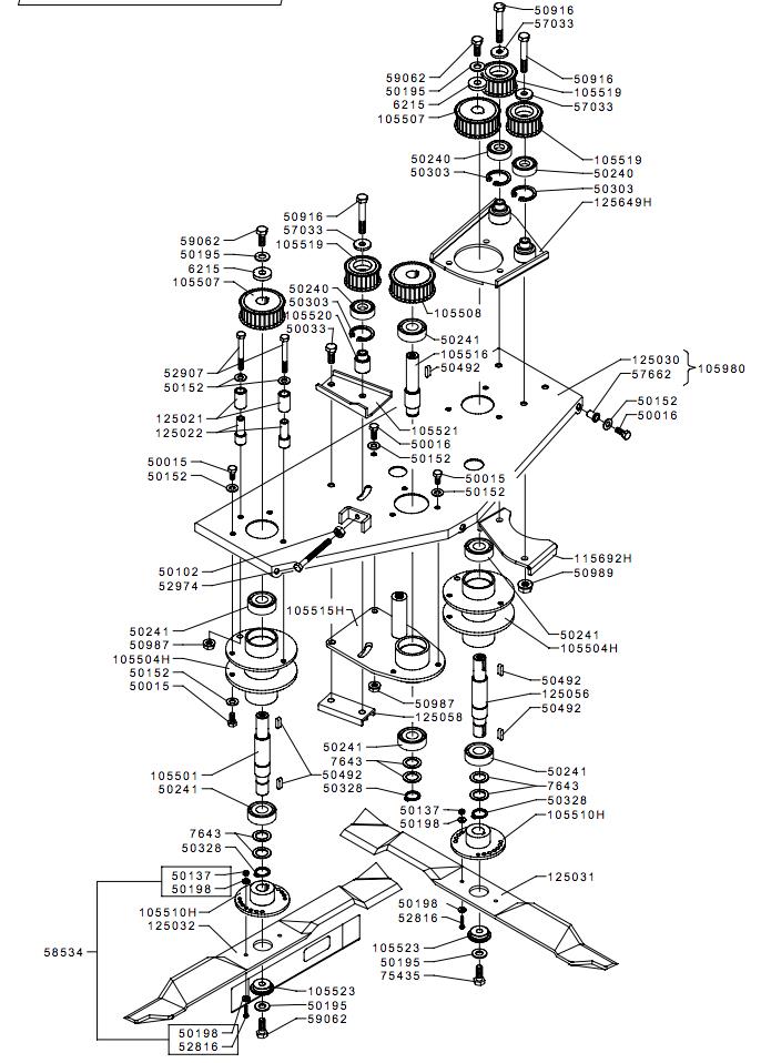 106 cm MULCHING DECK PULLEY & BLADES(from s/n 303001 from 2003)