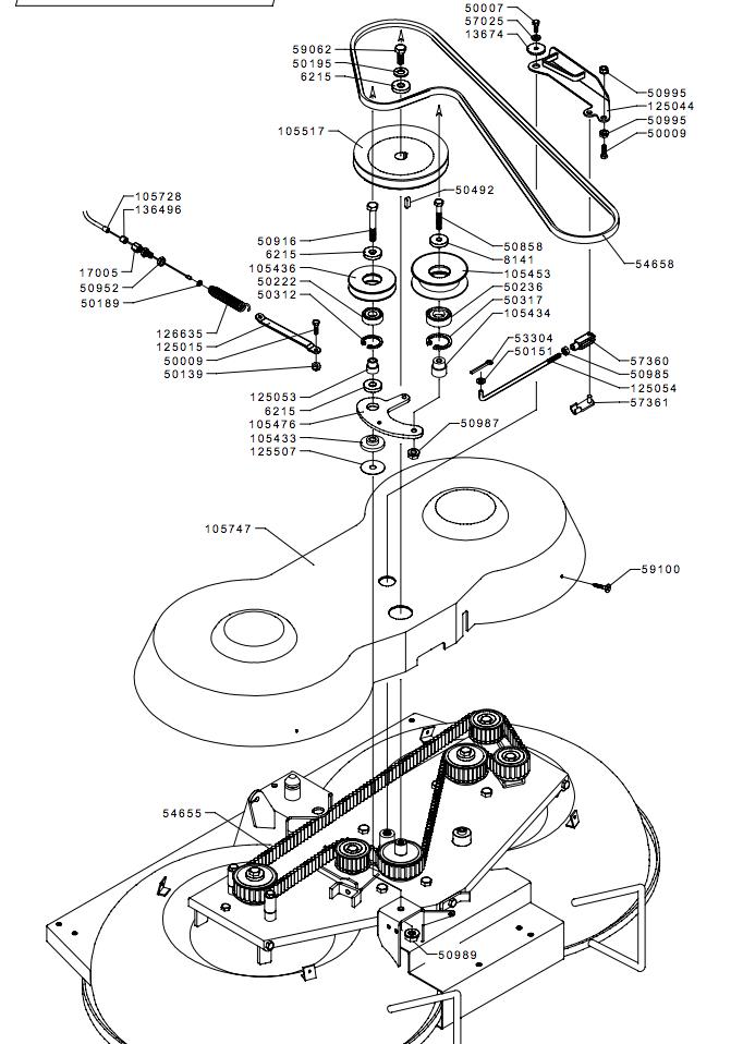 106 cm MULCHING DECK TRANSMISSION(from s/n303001 to s/n 521514 from 2003 to 2009)