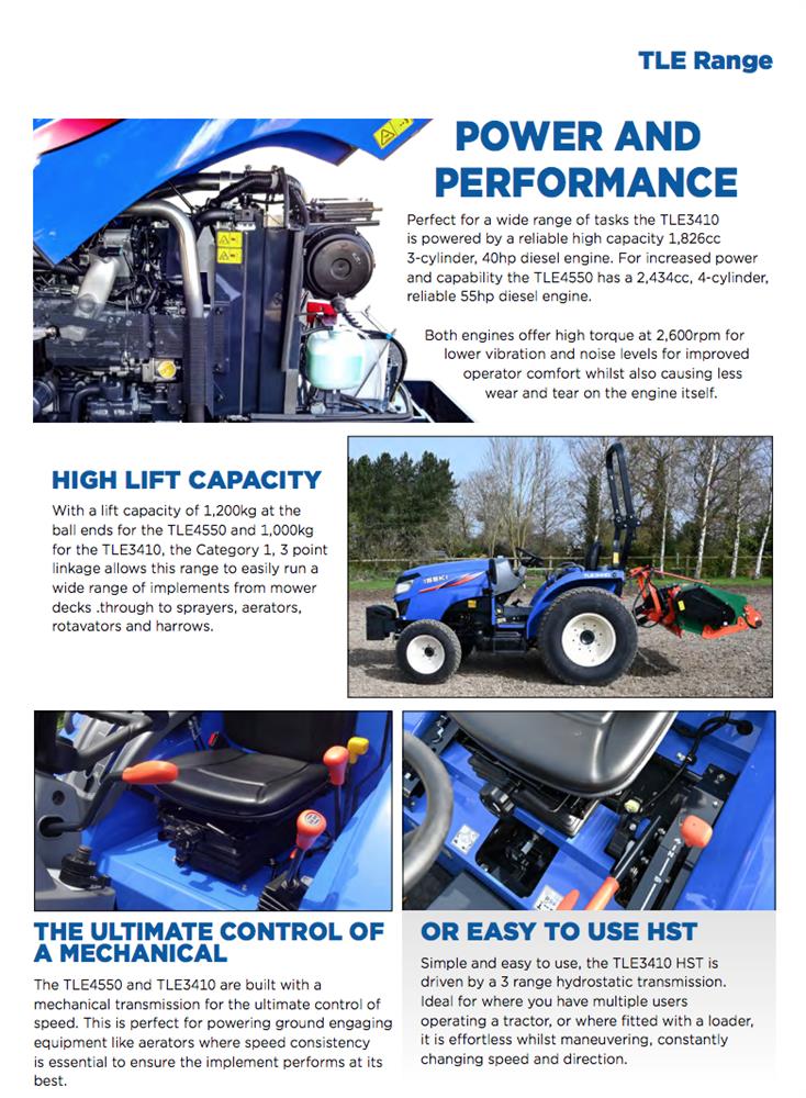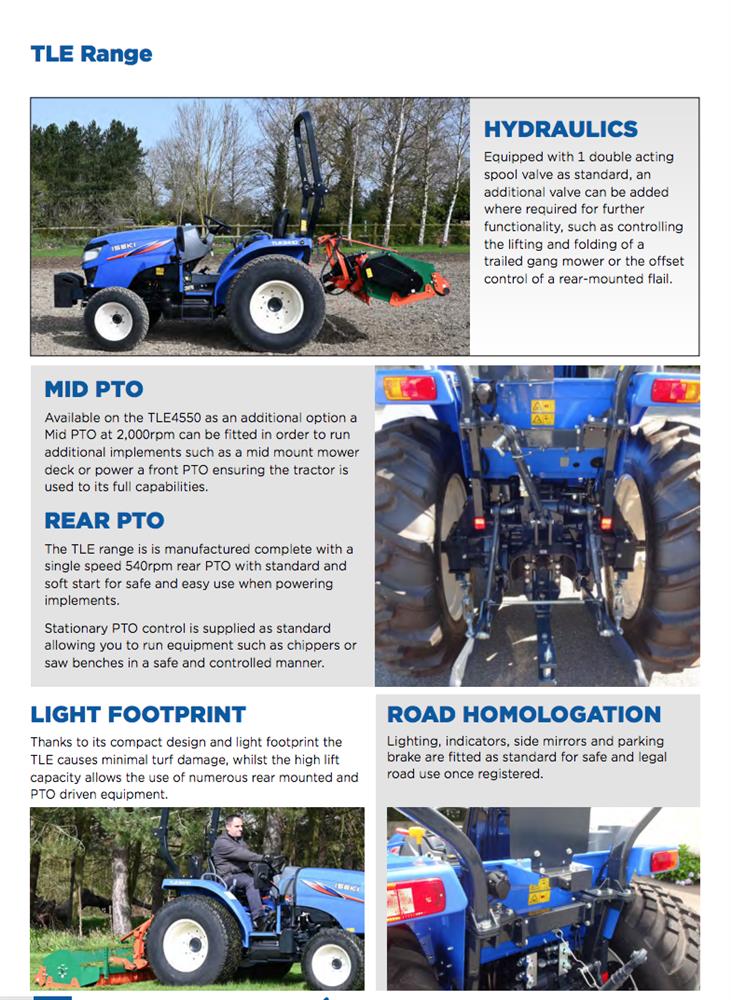 The premium economy range of tractors feature 40-55 horse power engines and simple controls which makes them excellent value for money. TLE tractors can be used on a wide range of applications, from smallholders to sport pitches where budget is tight but you don’t want to compromise on quality and horse power.