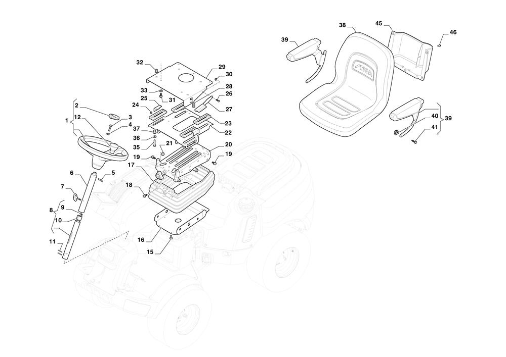 SEAT & STEERING WHEEL assembly details for Stiga PARK PRO 900 AWX (2F6430931/ST2) 2023 model