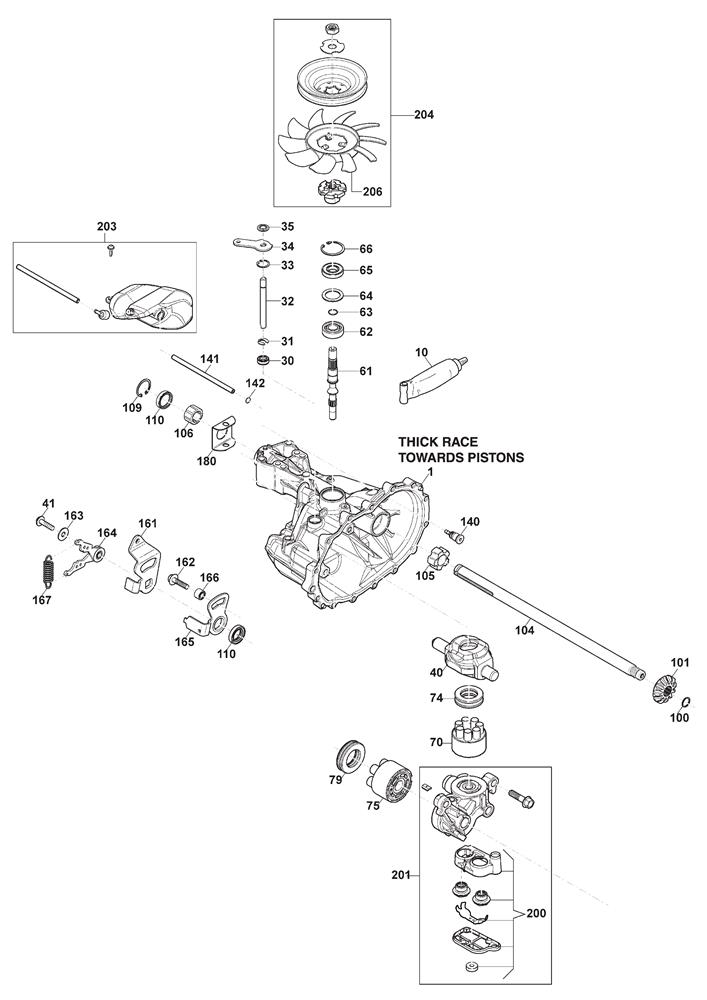 TRANSMISSION UNIT , HYDRO-GEAR T2-ADBF-2X3C-17X1 assembly details for Stiga ESTATE 4092 H (2T0430481/ST1) 2022 model