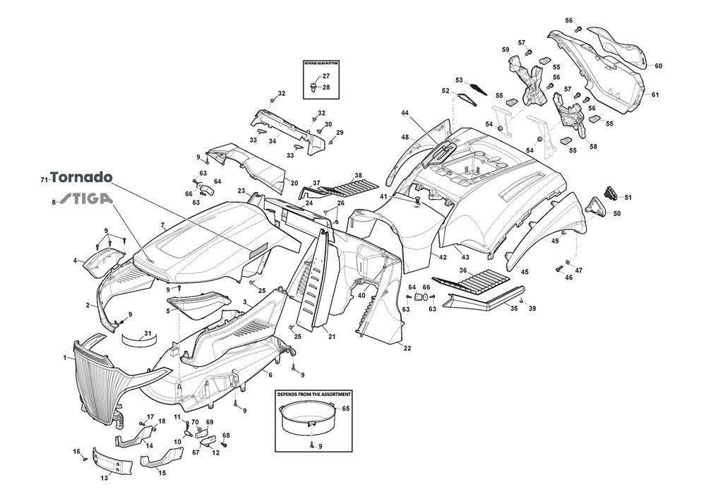 BODYWORK assembly details for Stiga TORNADO 7108 W (2T1845481/ST2) 2022 model