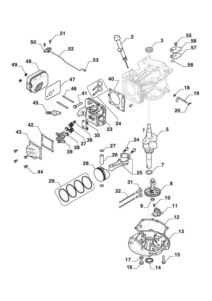 ENGINE - PISTON , CRANKSHAFT assembly details for Stiga COMBI 166 2T0070481/ST2 2023 model