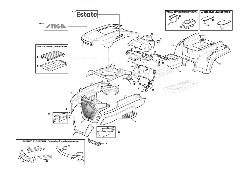 BODYWORK - FROM S/N 23DA3RON002449 assembly details for Stiga ESTATE 598 (2T2620481/ST2) 2023 model