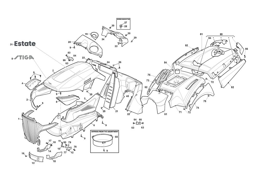 BODYWORK assembly details for Stiga ESTATE 9122 W (2T1310481/ST2) 2023 model