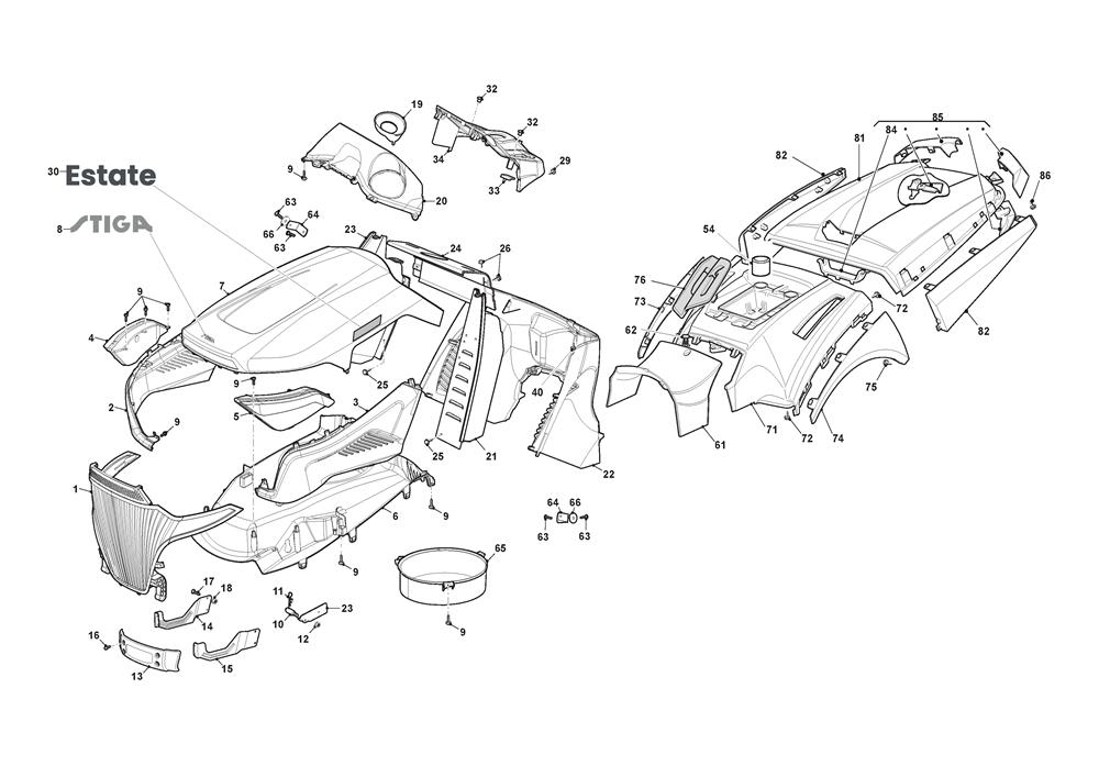 BODYWORK assembly details for Stiga ESTATE 9122 WX (2T1535381/ST2) 2023 model