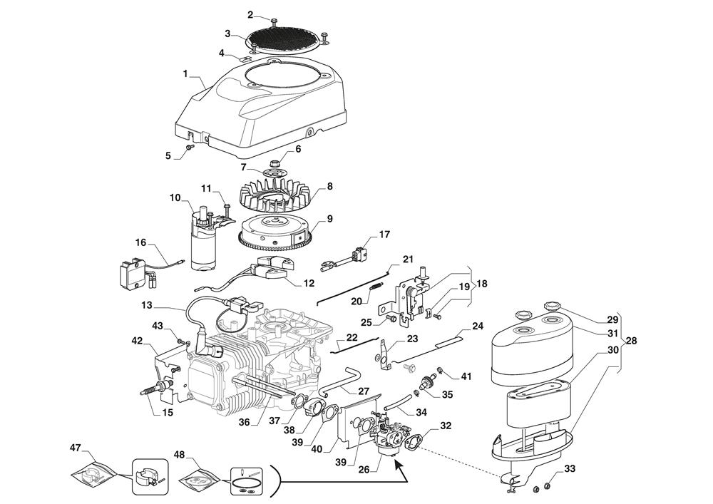 ENGINE - CARBURETTOR , AIR CLEANER ASSY assembly details for Stiga TORNADO 398 (2T0610481/ST1) 2023 model