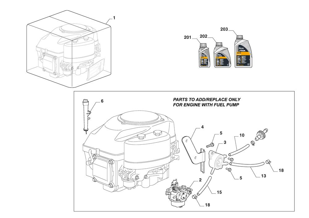 ENGINE, FUEL PUMP assembly details for Stiga TORNADO 398 (2T0610481/ST1) 2023 model