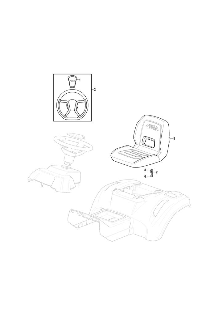 SEAT & STEERING WHEEL assembly details for Stiga TORNADO 598E (2T0665481/ST2) 2023 model