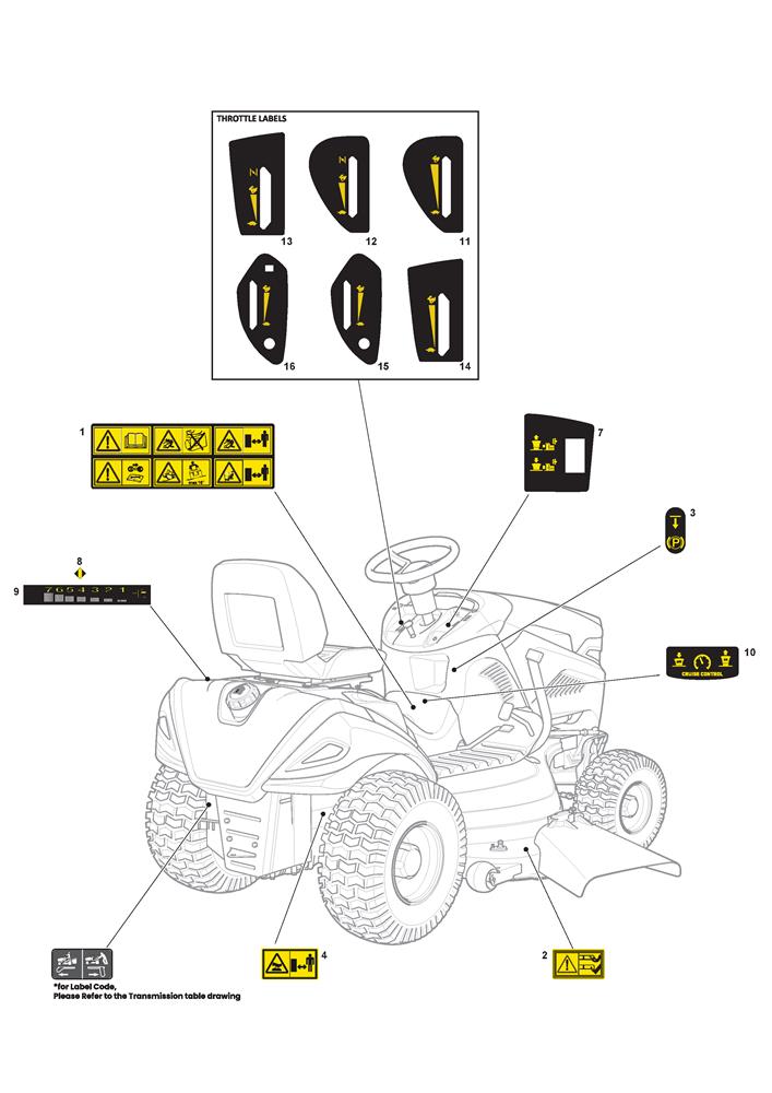 SAFETY LABELS assembly details for Stiga TORNADO 9121 W (2T1945481/ST2) 2023 model