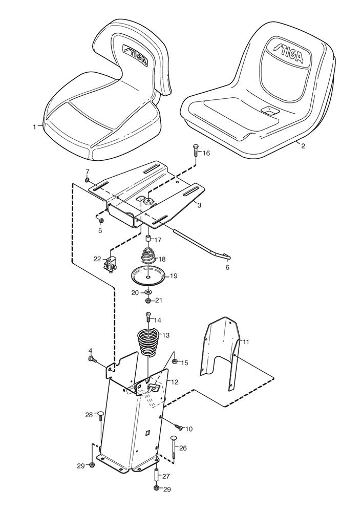 Seat assembly details for Stiga Park Compact 16 4WD (13-6104-48) 2007 model