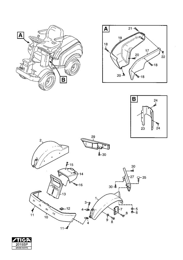 Body Work - Front assembly details for Stiga Park Power 4WD (13-6194-23) 2007 model