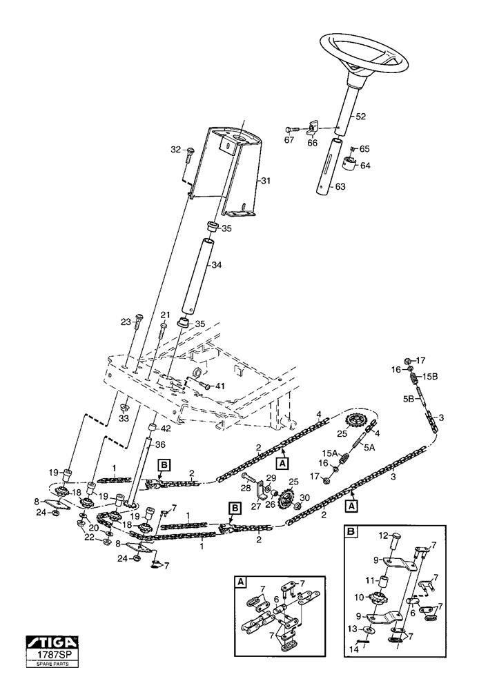 Steering assembly details for Stiga Park Power 4WD (13-6196-23) 2007 model