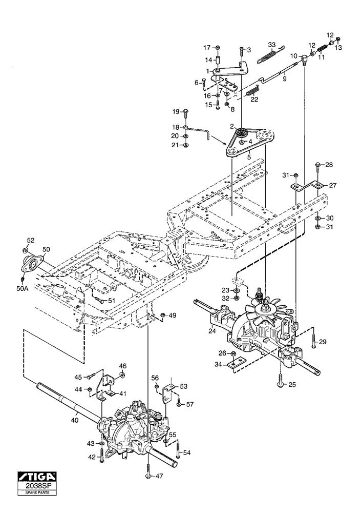 Transmission (Mechanical Parts) assembly details for Stiga Park Power 4WD (13-6196-23) 2007 model