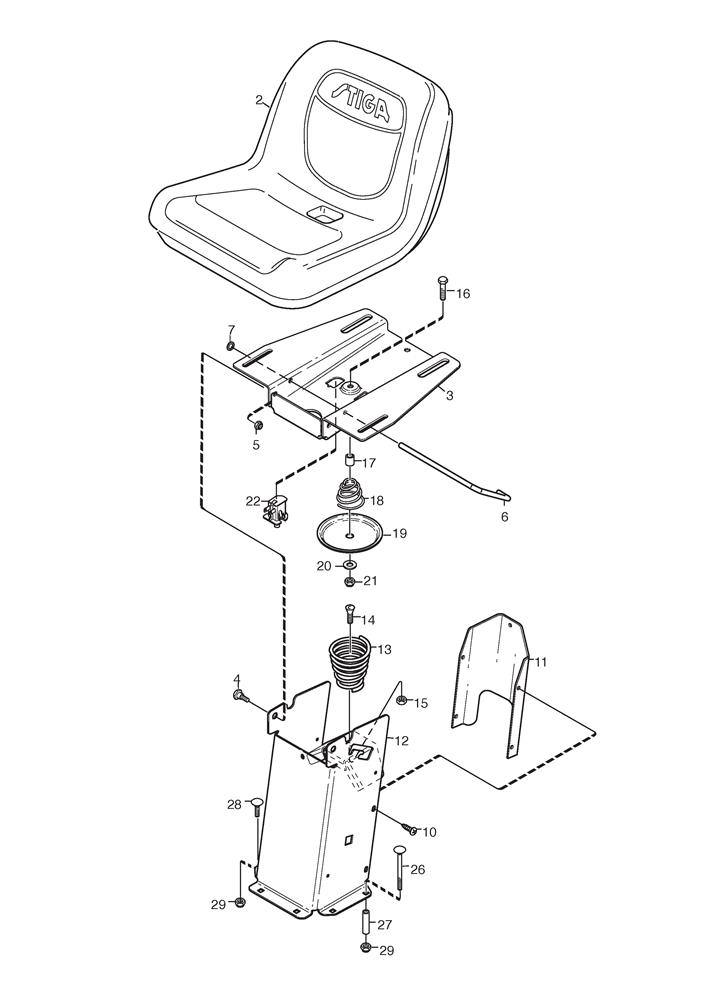Seat assembly details for Stiga Park Compact 14 (13-6109-20) 2009 model