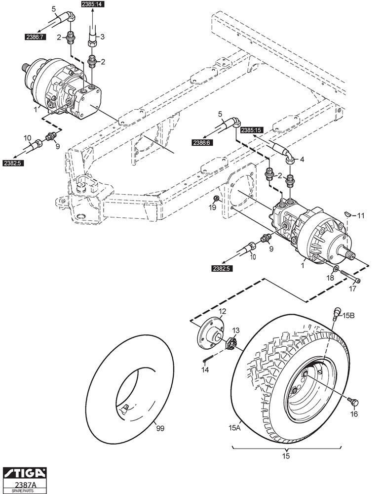 Wheel Engine-Rear assembly details for Stiga Titan 32 H W Cabin (13-7441-23) 2010 model