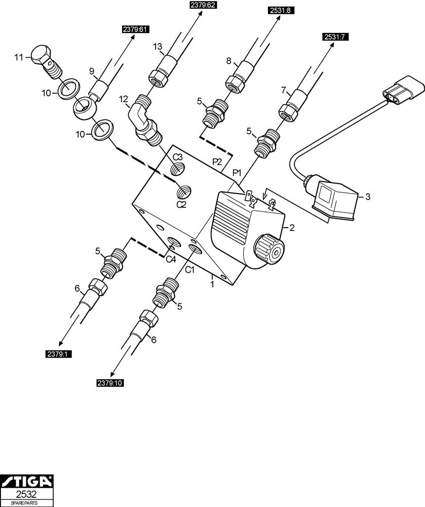 Selector Valve assembly details for Stiga Titan 32 H W Cabin AC (13-7442-22) 2010 model