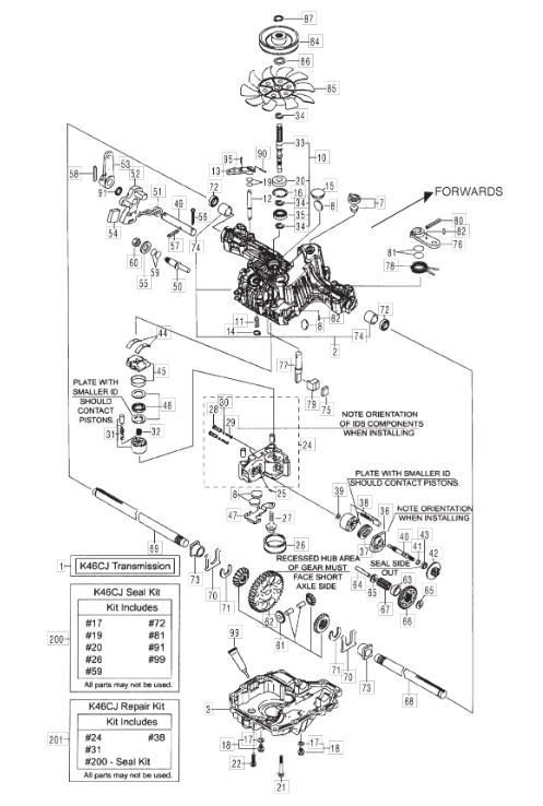 Kanzaki Transaxle K46C (s/N 0000001) assembly details for Stiga VILLA 14 HST (13-2718-14) 2011 model
