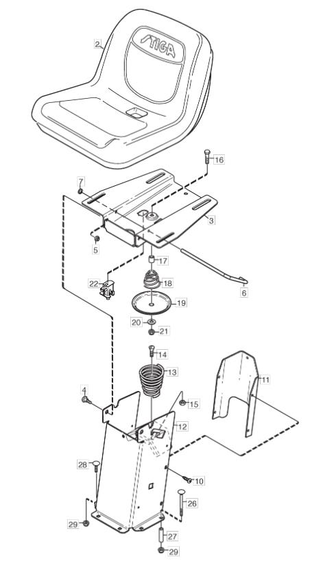 Seat assembly details for Stiga PARK COMPACT 16 4WD (13-6104-21) 2013 model