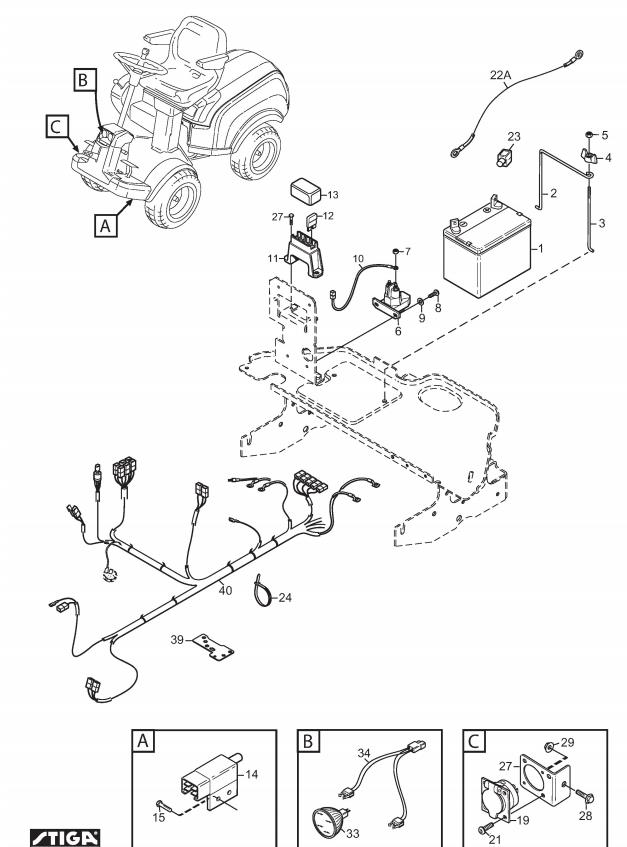 Electrical System assembly details for Stiga PARK RESIDENCE 4WD 2013 (13-6378-11) 2013 model