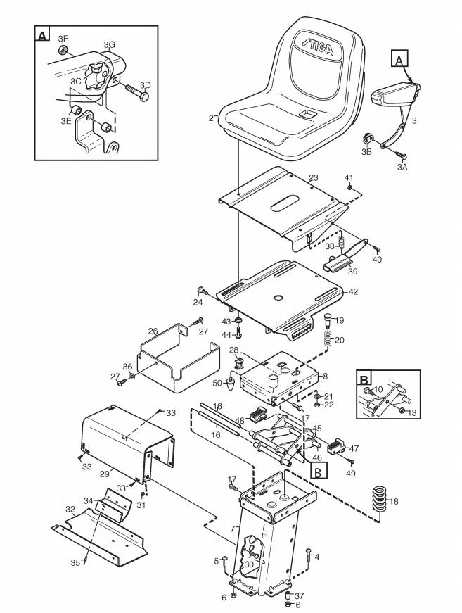 Seat assembly details for Stiga PARK 520 DP 2014 (13-6318-31) 2014 model