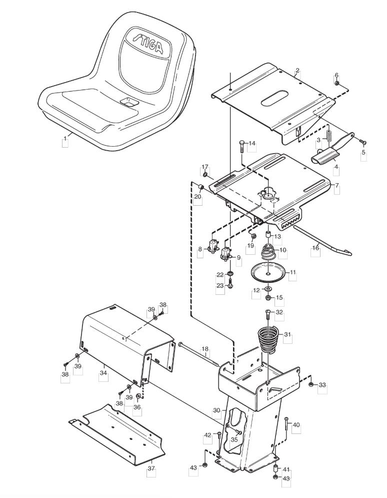 Seat assembly details for Stiga PARK 720 PW (2F6220620/S15) 2015 model