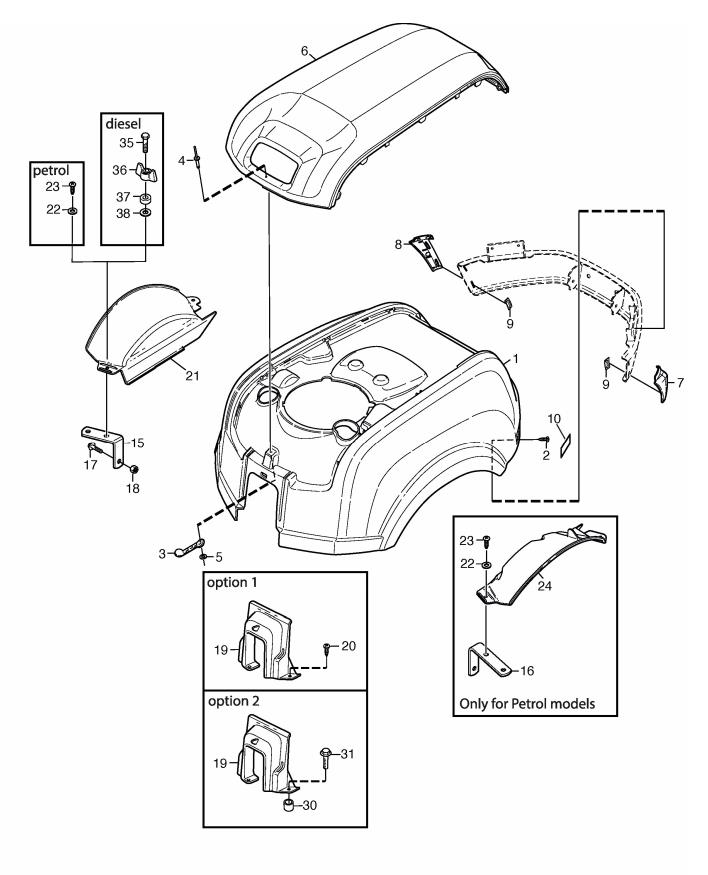 Body Work (1) assembly details for Stiga PARK 540 PX 2017 (2F6230611/S16) 2017 model